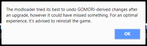 If you get a message that looks like this, you have modded the game with GOMORI before and didn't [**delete your legacy files like we told you to**](https://omo.cep.one/getting-started#next-steps).